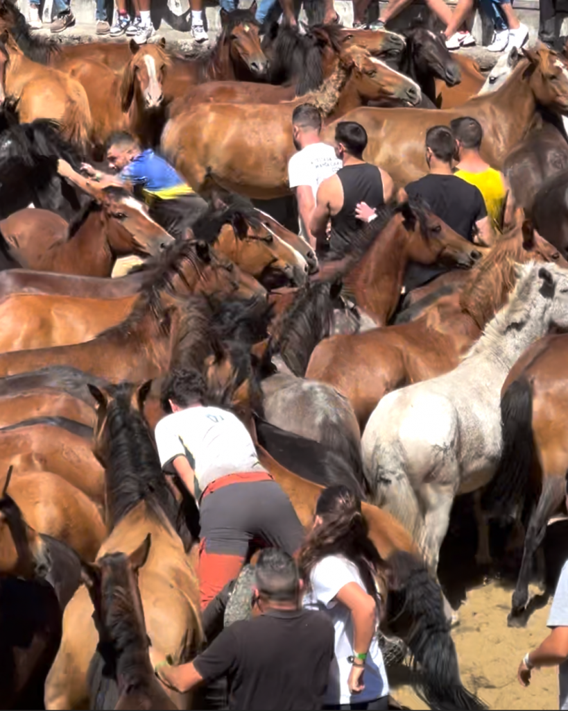 Still, in some parts of rural Galicia, the ancient relationship between humans and wild horses survives. Locals known as besteiros care for and manage the horses, and once a year this connection becomes visible during the rapa das bestas. The event takes place across various Galician villages, with the one in Sabucedo being the most famous.