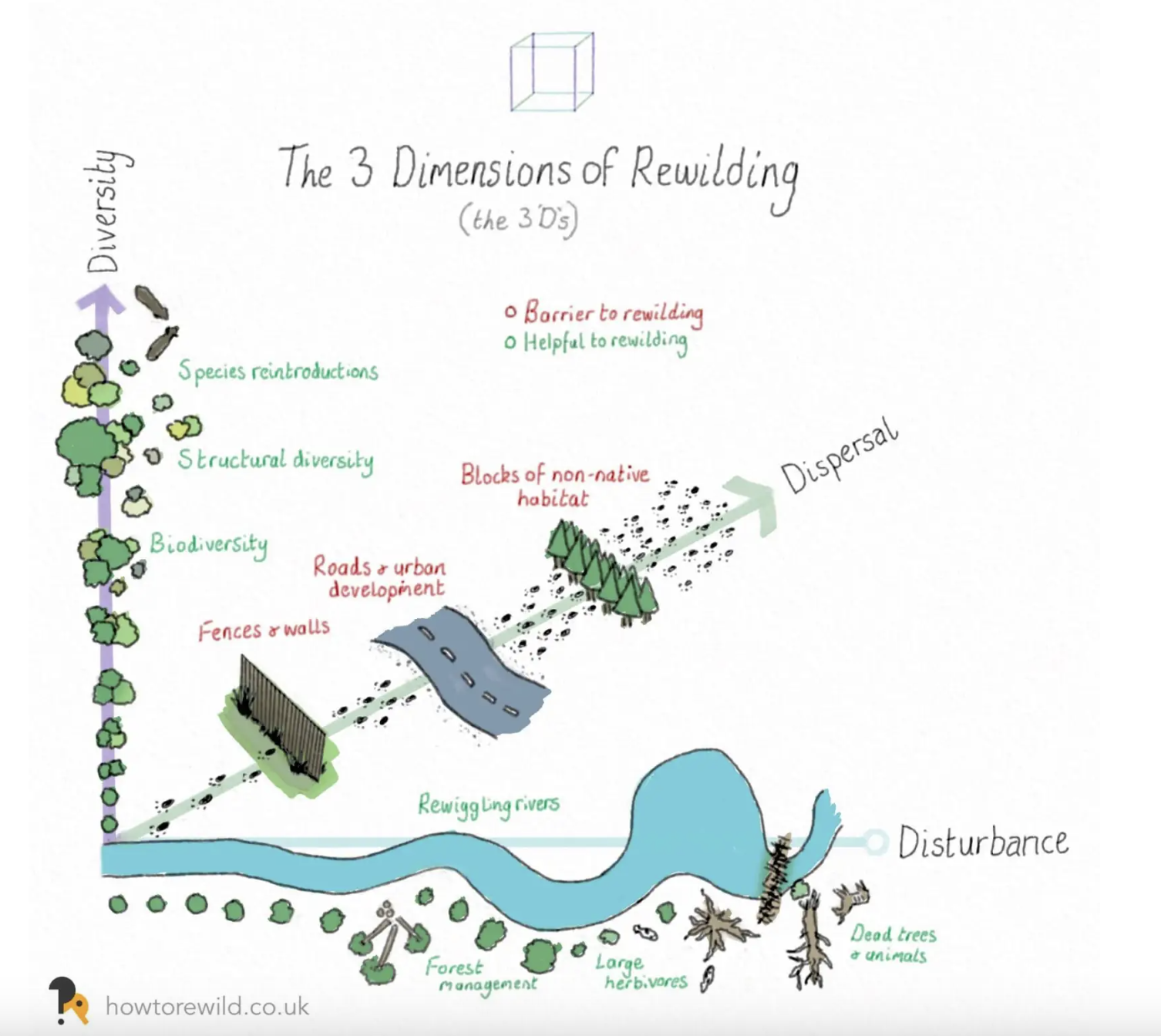 “Rewilding is a concept aiming to restore ecosystems and counteract biodiversity declines by giving large land areas back to wildlife and natural processes. Key in this approach are minimal invasive interventions to kickstart the rewilding process as well as the integration of humans and local communities. ”